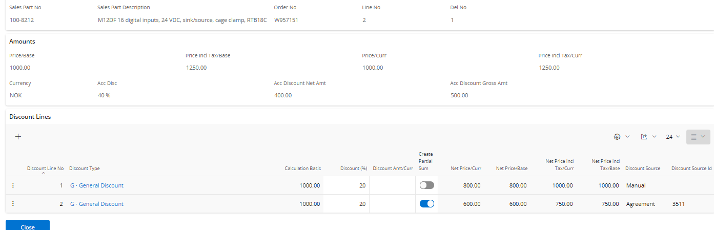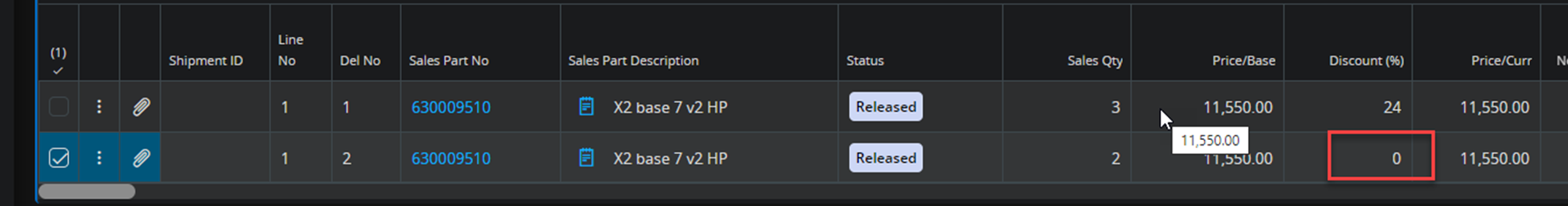 What happens next it that you change the quantity, which will trigger a price/discount update, which will restore the discount from the agreement This will give you two discount lines, this is not wrong, it’s how it should work Also, you will get a warning about that “manual discounts” existing