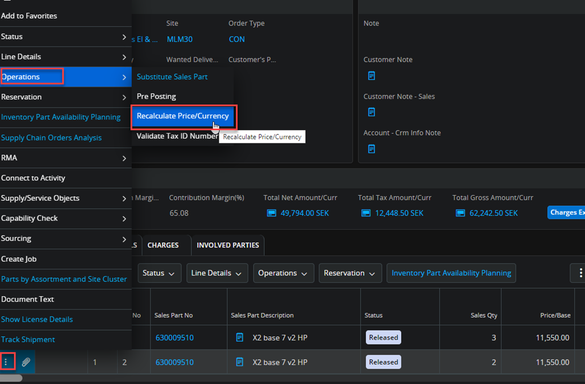 So, what you should have done from start, if you by mistake have removed the “agreement discount”, is to update the price/discount in the correct way, instead of manually adding a discount, you should use “Recalculate Price/Currency” on the order line. This can be done like this