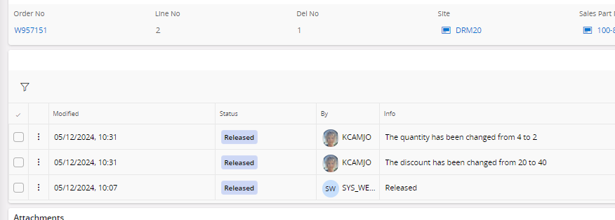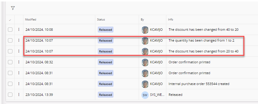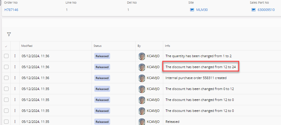 Jag har inget nytt exempel, och eftersom det inte händer varje gång man ändrar antal, utan bara på vissa order, så kan jag inte ge något exempel just nu men kan hojta om/när det händer.